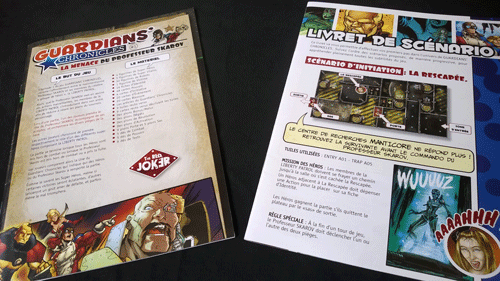 Du côté obscur de la force, les choses fonctionnent grosso modo de la même façon, ce qui est pratique, car du coup, un joueur habitué aux héros pourra s’essayer facilement au professeur Skarov. Vous possédez des cartes Événement qui sont l’équivalent des cartes Pouvoir, et des fiches personnages de vos vilains et de vos super-vilains-lieutenants.