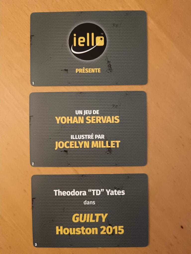 Guilty – Houston 2015 est le premier jeu de la nouvelle gamme/série de jeux d’enquête édité par Iello. Crée par Yoann Servais, les dialogues sont écrits par Mathieu Rivero, écrivain mais également membre de Ludovox