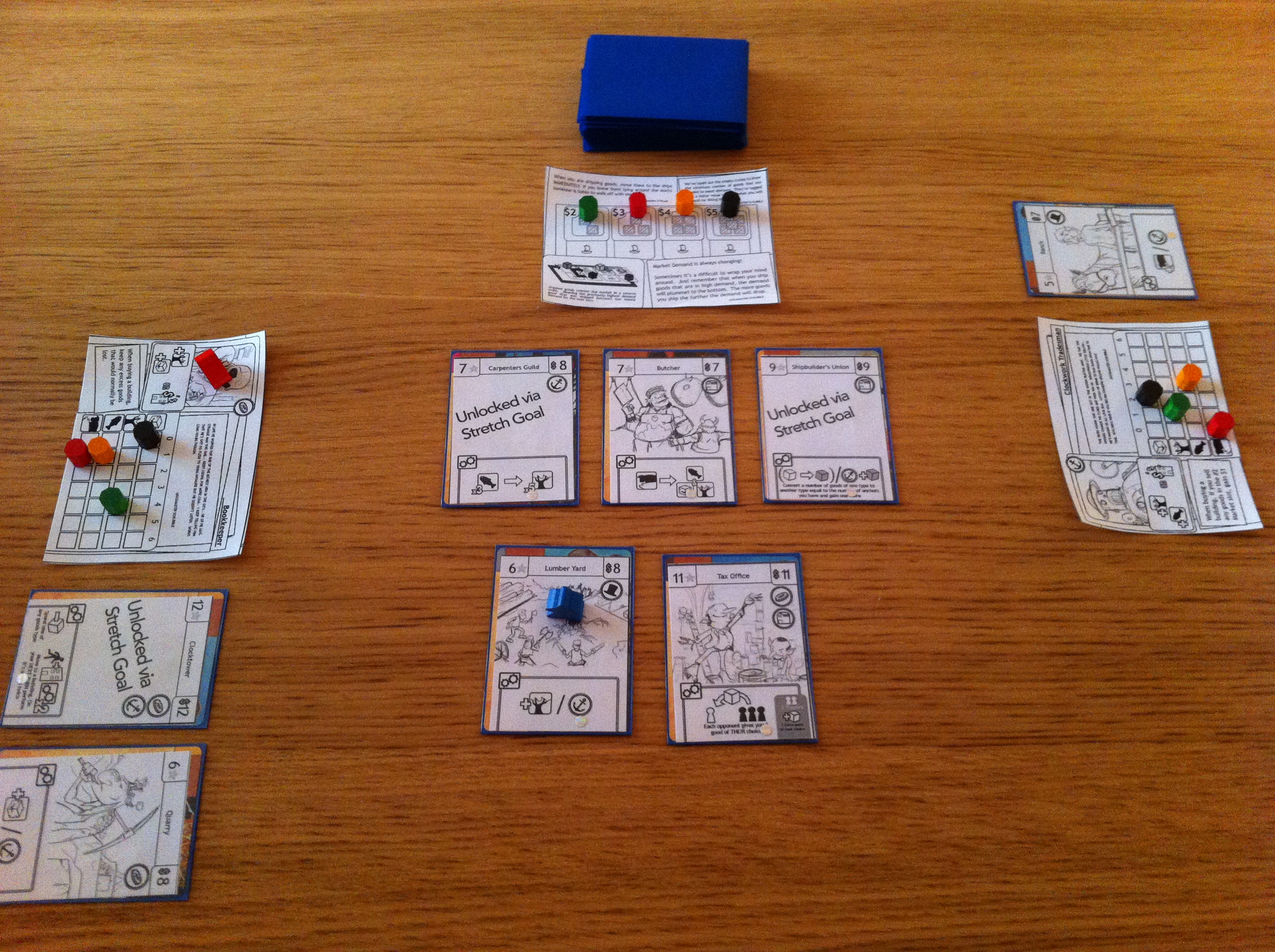 Et voilà. A chaque achat de bâtiment, on en remet un nouveau. Une fois qu’un joueur a construit son quatrième bâtiment, Chaque joueur possède encore un tour de jeu, puis on décompte les points indiqués sur les bâtiments que l’on possède et celui qui a le plus de points remporte la partie.
