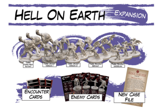 The Storm and the Fury comprend de nouvelles figurines, de nouvelles cartes Doom, de nouvelles cartes Rencontre et une nouveau mode de jeu. Trois autres extensions se concentrent chacune sur un élément différent afin de multiplier les expériences de jeu. L’extension Hell on Earth introduit de nouveaux minions à ajouter à vos missions (des grillons grouillants aux démons en passant par les mutants Ogdru-Hem) avec 15 nouvelles figurines.