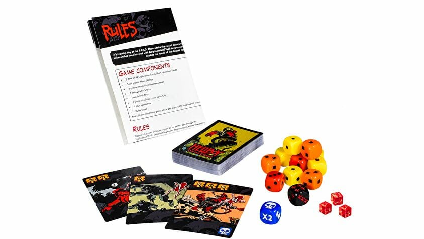 Hellboy: The Dice Game propose aux joueurs d’effectuer leur première mission en tant que membres du BPRD (Bureau for Paranormal Research and Defense) après avoir été récemment formés. Vous allez être envoyés sur le terrain au cœur d’un complexe industriel qui ne sent pas très bon. Bien sûr, vous ne serez pas seuls. Dans certaines salles, de petites grenouilles sympathiques croassent paresseusement. Dans d’autres, elles ont pris une forme un peu plus… diabolique. En tant qu’agents pas très expérimentés du BPRD, vous aurez accès à un nombre limité de capacités et de ressources. Il vous faudra donc naviguer en ces lieux de façon précautionneuse (ou pas). Comme dans le jeu de plateau, vous tenterez de trouver des indices tout en essayant de résister aux attaques des amphibiens vénères.