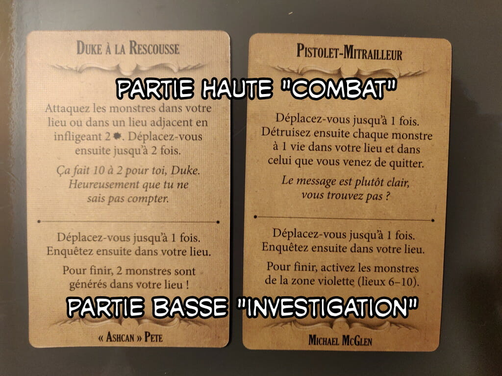 Enfin, il ne piochera qu’une seule carte de son deck Action. Cette carte est séparée en 2 zones :