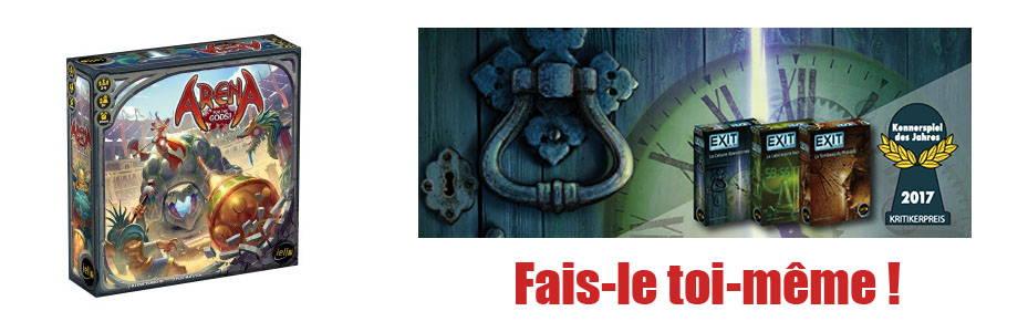 Mais ce n’est pas tout ! Si vous aimez Arena: for the gods!, le dernier jeu de Maxime Raimbourg, et que vous avez envie de faire vos propres cartes pour renouveler vos plaisirs, Iello propose un kit, à utiliser sous Photoshop, pour créer vos propres cartes, et même vos scénarios.