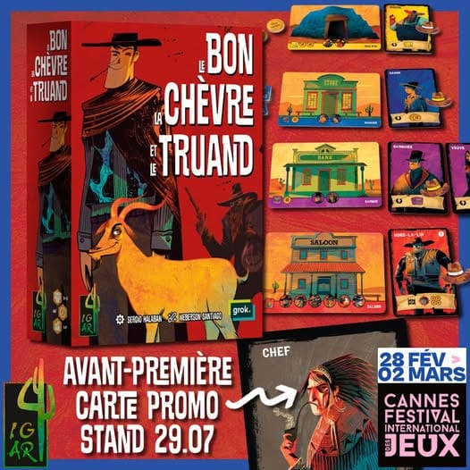 Dans Le Bon, la Chèvre, et le Truand de Sérgio Halaban, les joueurs incarnent divers personnages du Far West, en quête de “richesse, de contrôle et de domination dans une ville frontalière”. Ambiance Sergio Leone sauce au bluff pour ce jeu estampillé 12+ jouable de 2 à 5 joueurs pour des parties d’environ 30 à 45 minutes.
