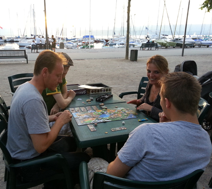 Pour l’heure nous nous concentrons sur la recherche d‘âmes joueuses, c’est pour cela que nous essayons de mettre en place tout les 2 week-ends des rendez-vous ludiques dans différents lieux : dans les cafés, en bord de plage, sur le port du lac, dans la rue lors d’événements spécifiques… l’idée est de rencontrer des gens en espérant que, de fil en aiguille, ils puissent s’impliquer et nous accompagner dans cette aventure.