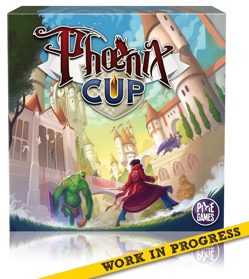 Mon premier jeu, Phoenix Cup, est édité chez Pixie Games et le Kickstarter est pour juin de cette année si tout va bien. C’est un eurogame accessible très inspiré de l’univers de Harry Potter. Pour les connaisseurs, le thème du jeu est en quelque sorte un mélange entre la Coupe des 4 Maisons et le Tournoi des 3 Sorciers : vous êtes étudiants dans une école de magie et la fin de l’année scolaire arrivant, l’Ecole organise le traditionnel tournoi pour déterminer le meilleur élève de l’école. Les joueurs incarnent le meilleur élève de leur maison (ce qui est déjà pas mal) et doivent pendant quatre jours, en parcourant les différentes salles du château, utiliser leurs connaissances dans les matières enseignées à l’Ecole : étude de runes, fabrication de potions, soin aux créatures magiques, défense contre les forces du mal. Il est aussi possible d’aller à la bibliothèque emprunter un livre ou dans la salle des professeurs pour corrompre un peu le jury.