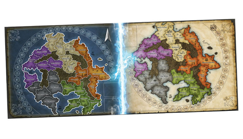 Le jeu est composé d’un grand plateau, avec d’une part, sur la gauche, le royaume des ténèbres et d’autre part, à droite, celui de la lumière. Dans chaque royaume coexistent 5 territoires eux-mêmes composés de 5 régions.