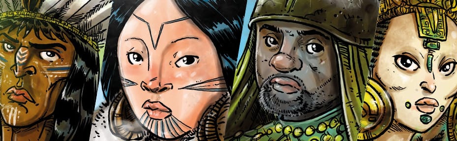 La saga de Nigel Buckle & David Turczi et illustrée avec inspiration par l’infatigable Mico, a donc encore des civilisations à vous faire découvrir, avec par ordre alphabétique : Abbasside, Aksoumite, Cultiste, Gupta, Inuit, Japonaise, Magyare, Martienne, Maya, Polynésienne, Sassanide, Taïno, Tang et Wagadou.