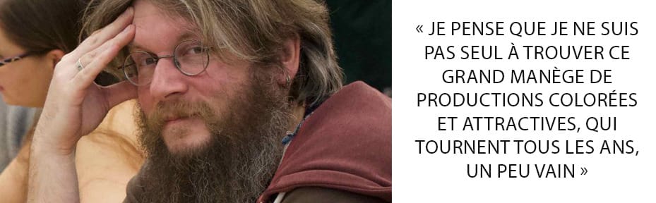 Superbe itw, sans langue de bois, et qui résonne particulièrement avec mon positionnement sur ce milieu depuis quelques années. Merci de donner la parole à des gens qui pensent autrement, ce qu’étaient d’ailleurs les premiers auteurs du milieu, avant que le commerce de masse ne salisse tout.