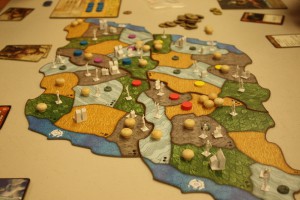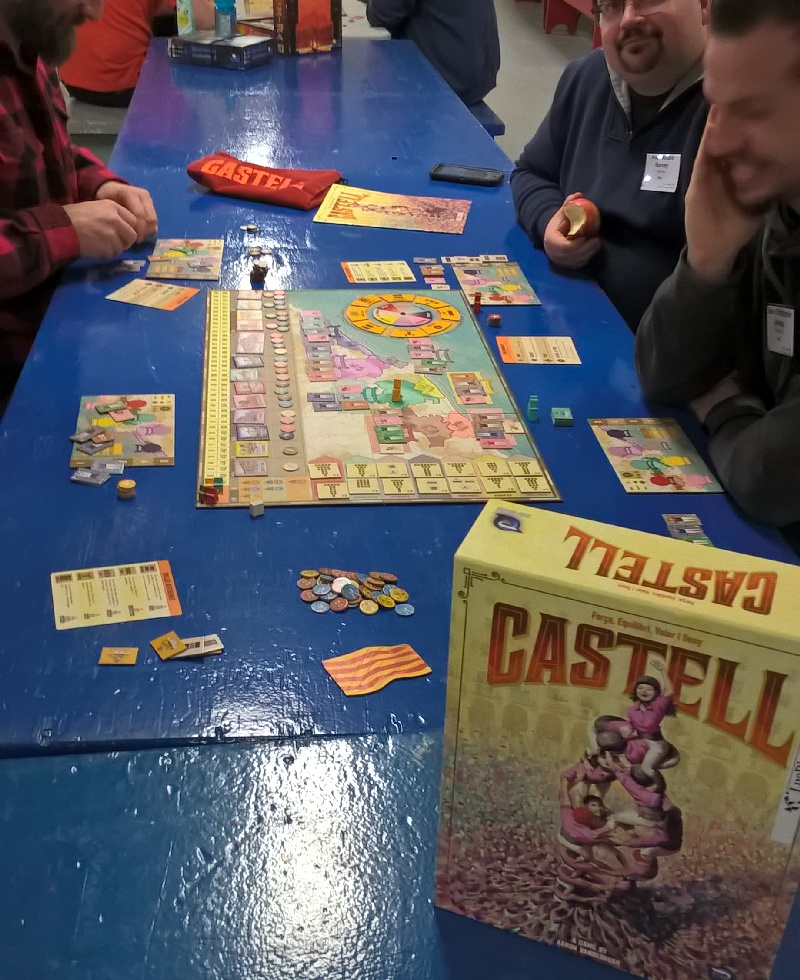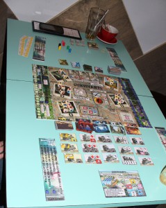 La soirée m’a aussi permis de tester les deux dernières sorties de Cathala, Kingdomino Age of Giants et Micropolis (avec C. Chevallier).