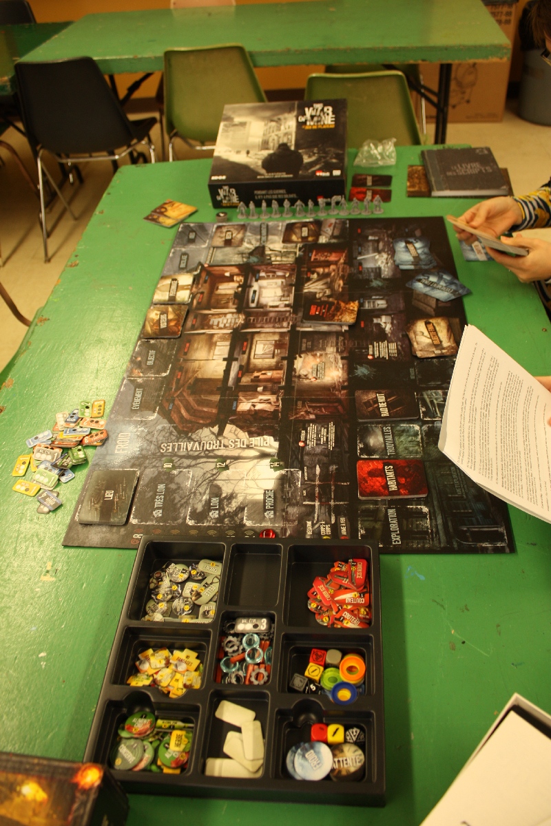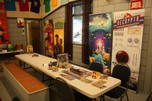 Au dessus du salon des auteurs se trouvaient deux salles, l’une occupée par le Randolph qui avait amené pas mal de nouveautés. J’y ai notamment croisé des tables de This War of mine, Thunderstone Quest ou High Frontier (plus vieux mais tout aussi incroyable).