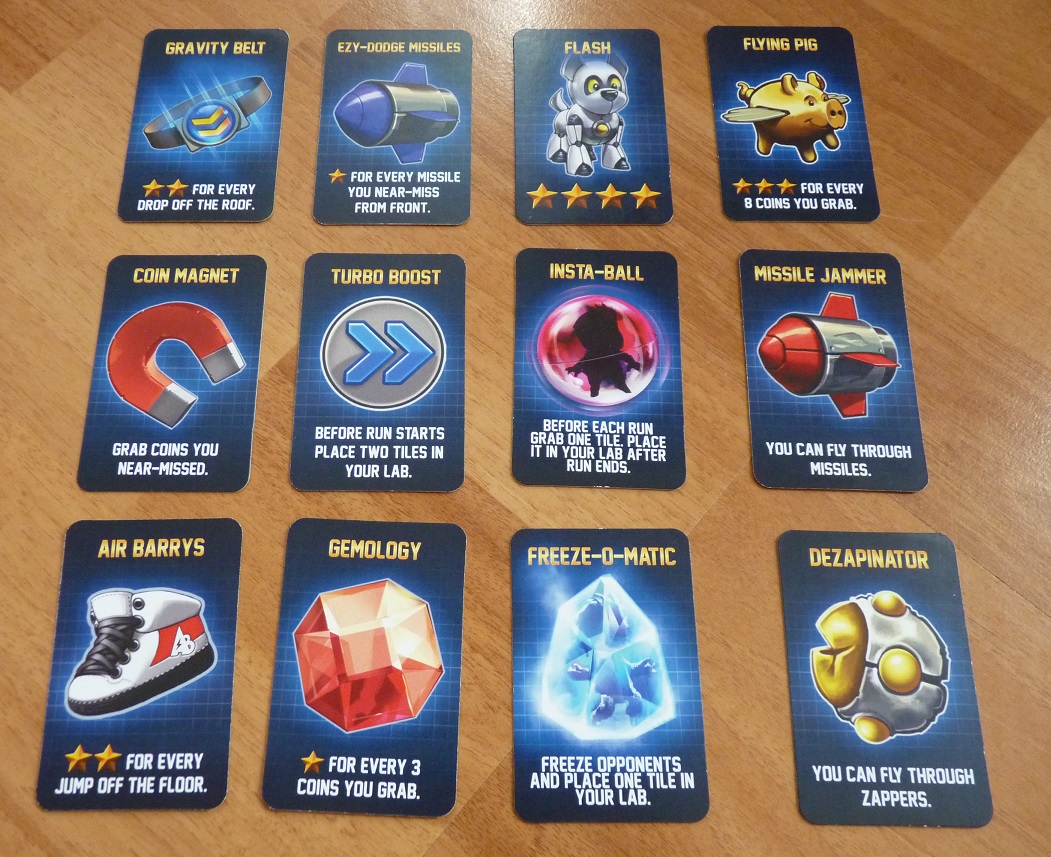 Je vous ai parlé des objets spéciaux : ils seront récupérés entre deux manches en faisant un draft. On met simplement à disposition autant d’objets que de joueurs, et le cancre ayant le moins de points fait son choix en premier. Quand tout le monde a récupéré un objet, on repart sur une nouvelle manche, en passant son laboratoire à son voisin de gauche (non, on ne prend pas d’objet après la troisième manche ! Essayez de suivre un peu, c’est fatiguant).