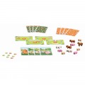 - Le jeu contient 32 cartes pronostic (8 sets de couleurs différentes avec chacun 4 animaux: 1 vache, 1 cheval, 1 cochon et 1 mouton), 18 cartes actions, 42 jetons de points (27 jetons verts = 1 point, 15 jetons rouges = 3 points), 26 pions animaux (7 moutons, 7 cochons, 6 vaches et 6 chevaux) et la règle du jeu.