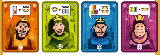 Les gains des différentes Lois sont variés, vous permettant de remporter (ou mieux, voler) couronnes, cartes, blasons ou gardes afin d’être le premier à avoir 13 Couronnes !