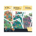 Avez-vous les cartes bien en vue? Seuls les joueurs à l’affut de ce que les autres manigancent pourront marquer des points dans ce jeu de cartes. Plus il y a de cartes d’une même couleur sur la table, plus vous pourriez gagner de points. Mais soyez vigilants, s’il y en a trop, elles ne vaudront rien !