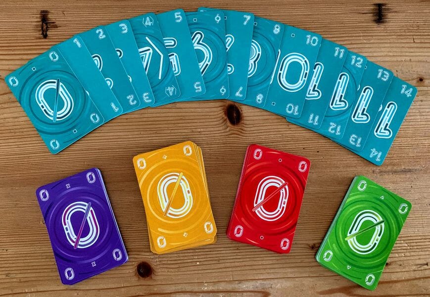 Le jeu contient des cartes numérotées de 0 à 14, dans cinq couleurs différentes. Certaines de ces cartes ont des effets spéciaux :