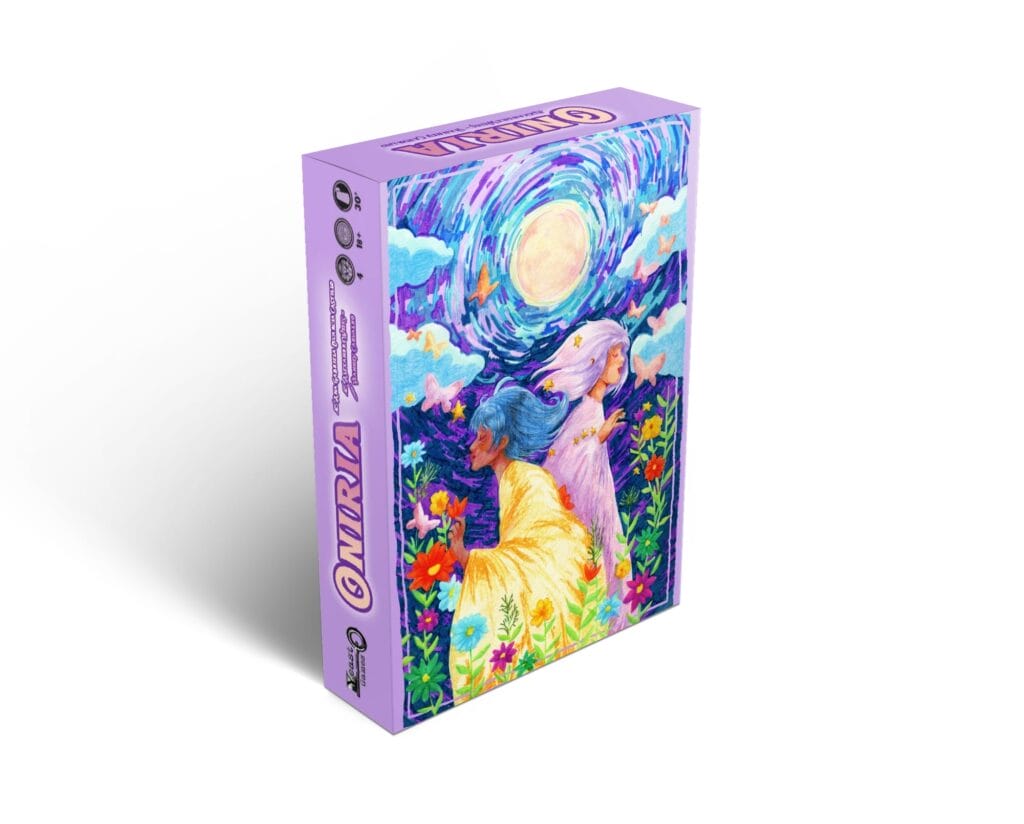 À l’issue d’une manche, la Soñadora marque des points selon le nombre de plis gagnés ; les rôles tournent jusqu’à ce que chaque joueuse ait incarné la Soñadora. Oniria mêle bluff, lecture fine des autres, gestion de main et tension symbolique dans un format compact et immersif."