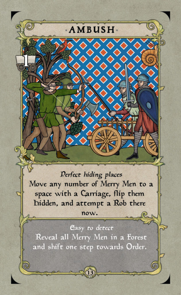 Un deuxième nouveau mécanisme de mouvement caché : Les carrosses servent de simples lignes de communication, transférant la richesse vers Nottingham tout en fournissant une cible pour les vols des Joyeux compagnons - mais certains d'entre eux peuvent être un piège, contenant des sbires cachés !