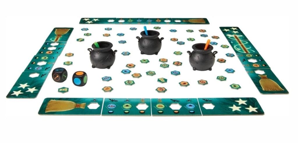 Dans Abracada-Broom, chaque joueur utilise sa mémoire pour récupérer les ingrédients nécessaires à ses potions. Mais attention : les dés perturbateurs viennent régulièrement modifier le jeu, en échangeant des chaudrons ou en déplaçant les cuillères colorées ! Le but est de reconstituer son balai pièce par pièce, chaque potion réussie apportant une partie de l’objet magique.