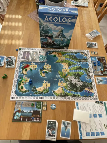 Lorsque vous naviguez, vous dépendez des vents capricieux du puissant Aeolos. Comme le légendaire Ulysse, veillez à ce que votre sac à vent soit toujours bien rempli. Utilisez-le à bon escient et gardez un œil sur les autres marins car vous luttez constamment contre le temps sur les îles des vents."