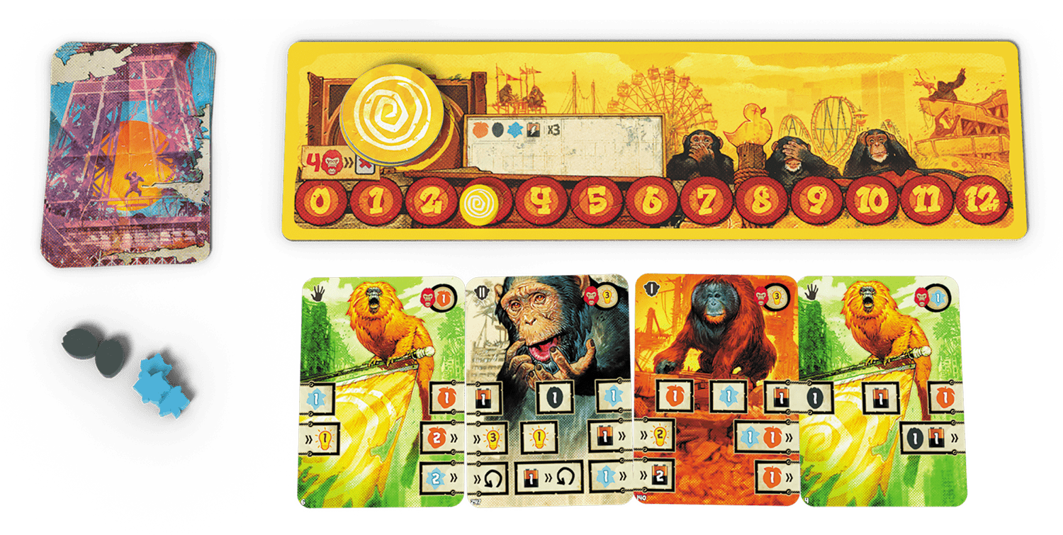 Placez vos cartes les unes à côté des autres pour composer des lignes rapportant ressources, points de victoire et effets spéciaux. Le bon agencement de vos cartes est la clé pour remporter cette course aux points tendue. Pour l'emporter dans After us, vous devez atteindre 80 points de victoire avant vos adversaires. À chaque tour, tous les joueurs vont simultanément piocher les 4 premières cartes de leur deck puis les assembler, de gauche à droite, pour former des cartouches d'activation. Ils vont ensuite résoudre ces cartouches, un par un, de gauche à droite, pour gagner des ressources, des points de victoire ou activer les capacités spéciales de leurs primates. Tout le sel du jeu consiste donc à réaliser son assemblage judicieusement, en fonction de ce qu'on souhaite obtenir des cartes que l'on a piochées. Une fois cette phase d'activation résolue, tous les joueurs ont la possibilité d'ajouter un nouveau singe à leur tribu : chimpanzé, gorille, mandrill ou orang-outan. Ce choix dépend autant de leurs capacités spécifiques que des ressources dont disposent les joueurs !