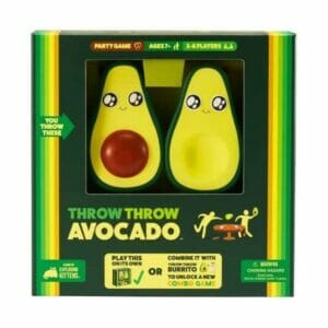 Vous aimiez le premier ? Vous adorerez le second ! Aïe aïe avocado est à la fois la suite et l'extension de Aïe Aïe Burrito. Mélangeant défausse de cartes et balle au prisonnier, vous devrez réaliser des combinaisons pour vous défausser de vos cartes et gagner le droit de tenter d'allumer vos adversaires à grand coups d'avocats en mousse !