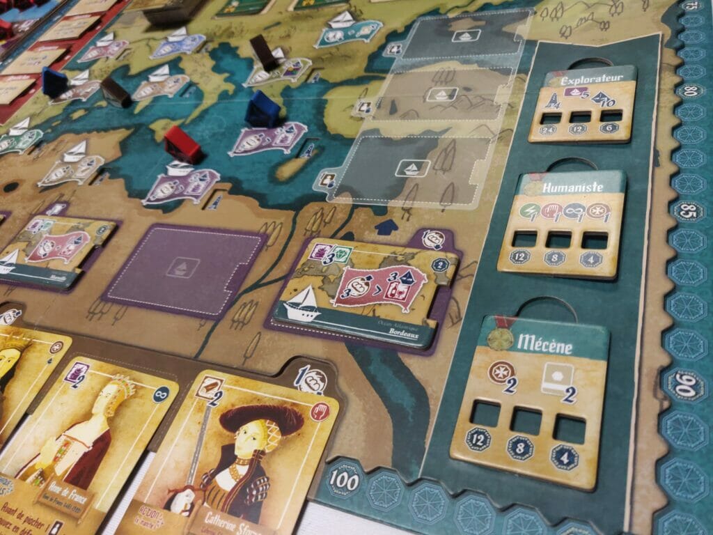 Il vous sera possible de construire de nouveaux navires afin d’augmenter vos capacités de commerce et d’optimiser vos voyages pour effectuer plus d’actions de jeu.