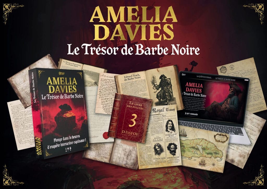 Amelia Davies : Le Trésor de Barbe Noire est un jeu d’enquête immersive et historique pour 1 joueur et plus et une durée d'environ 6h d'enquête. Dans ce jeu de société, vous incarnez Amelia Davies, première chasseuse de trésors professionnelle, et plongez dans une aventure riche en énigmes, documents anciens et révélations historiques, sur la trace du légendaire trésor de Barbe Noire.