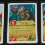 Les cartes ont des usages différents - gagner de la monnaie supplémentaire ou manipuler votre plateau - et sert également de minuterie. Quand un joueur a un certain nombre de cartes, le dernier tour commence alors le jeu se termine.
