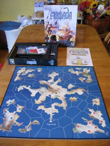 Au centre du plateau de jeu se tient l'île encore mystérieuse et inexplorée, aux quatre coins un petit archipel sert de base de départ à votre bande.