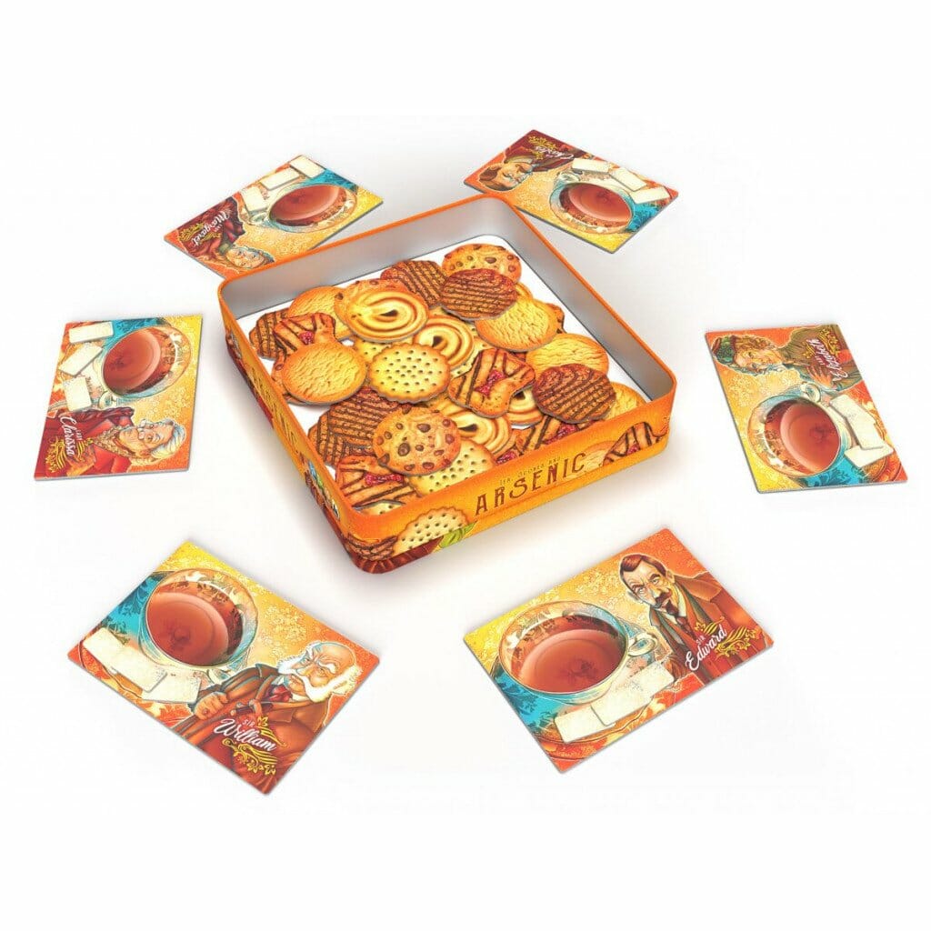 ARSENIC est un jeu familial, pour 1 à 6 joueurs, à partir de 7 ans et proposant des parties d'environ 15 minutes. Ce party-game teinté de réflexion, de bluff, de stratégie et d'un soupçon de chance est basé sur le principe du stop-ou-encore. Les joueurs doivent rivaliser d'audace et de sang froid pour s'arrêter avant qu’il ne soit trop tard. Une bonne analyse statistique des biscuits restants et de leur dangerosité potentielle peuvent vous permettre de tirer votre épingle du jeu... Mais ces chiffres rassurants sont malheureusement souvent faussés par la perfidie sans bornes de vos adversaires. Soyez prudent car parfois, il en faut vraiment peu pour se faire piéger et passer de vie à trépas.