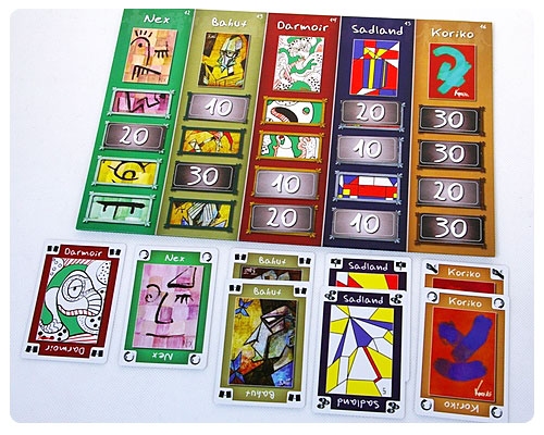 "Dans Art Moderne, chaque joueur dirige une galerie d’art et cherche à acheter et vendre des tableaux au meilleur prix. Le jeu est doublement original, d’une part la cote des oeuvres découle directement des achats des joueurs, et d’autre part plusieurs types d’enchères sont proposés : enchère libre, secrète, à un seul tour...