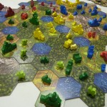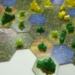 Les hexagones représentent divers types de terrains - une fois occupés ils permettent de construire des villages qui pourraient devenir de nouvelles villes.