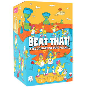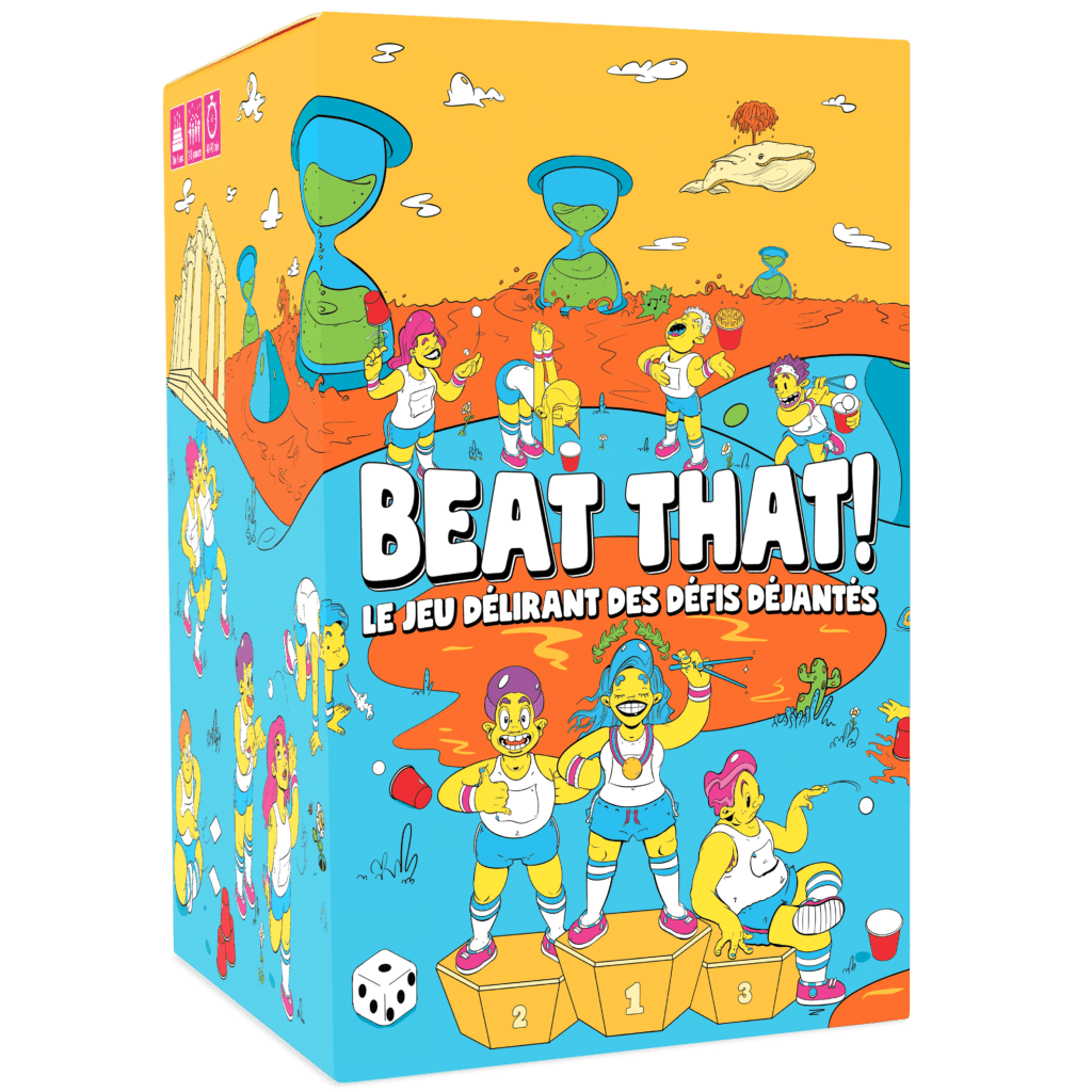 Avec sa grande variété de défis aussi amusants que farfelus, ce jeu de toutes les occasions amusera les enfants comme les adultes ! Les règles sont simples et permettent une immersion immédiate dans l'univers totalement hilarant de Beat That! Suspense, compétition et rigolade à la clé !