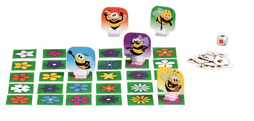 Qui réussira à trouver le plus de fleurs avec la couleur du dé ? Sois le premier à poser ton abeille au croisement de la ligne ET de la colonne où cette couleur apparaît le plus souvent ! Le plus rapide gagne des délicieux pots de miel. Regarde bien les tuiles : la couleur des pétales ET du coeur de la fleur comptent !
