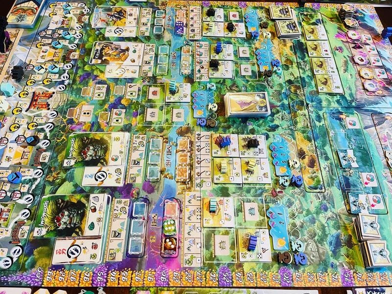 Chaque joueur a également trois gardiens yōkai (sous forme de dés) qu’ils peuvent envoyer dans les grandes régions de la forêt sur le tableau principal afin d’obtenir toutes sortes de nouvelles options qu’ils peuvent jouer pendant le jeu.