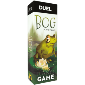 BOG est un jeu pour deux joueurs dans lequel vous jouerez des grenouilles et les déplacerez sur les nénuphars. Gobez des mouches pour piocher plus de cartes et capturez les grenouilles de votre adversaire tout en profitant du positionnement de vos grenouilles et des siennes pour marquer encore plus de points ! Un jeu de gestion de main de cartes, de programmation de déplacements et d'objectifs.