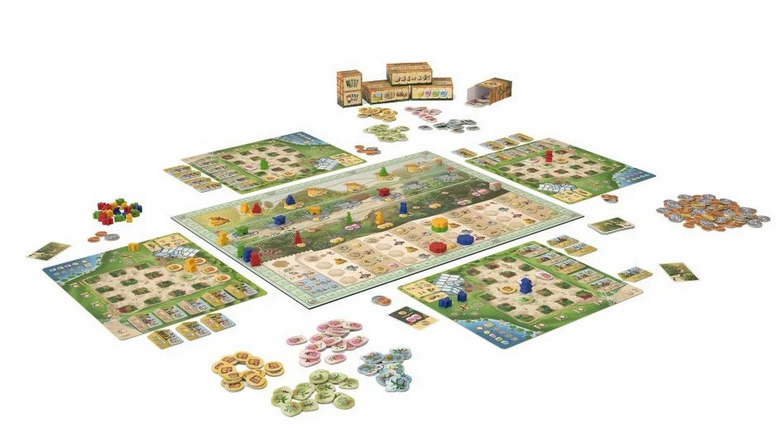 - 1 règle 1 plan 4 plateaux joueurs 130 plaquettes 20 cartes jardin 12 cartes fin de jeu 24 pièces en bois 20 petits animaux