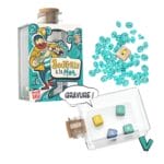 Tout le monde joue en même temps ! Secouez la bouteille fermée avec les 4 dés à l'intérieur. Le premier ou la première à trouver un mot qui contient les 4 lettres remporte un diamant ! Mais attention, si vous commettez une erreur, vous en rendrez un. 8 diamants collectés ? Bravo ! Vous avez gagné ! Plusieurs variantes de jeux.