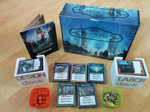 Brass Empire est un jeu deckbuilding à thème steampunk où chaque joueur joue le rôle d'une société différente qui embauche les meilleurs employés, construit des bâtiments et fabriquera des machines à vapeur. Les joueurs s'affrontent et se sabotent les uns les autres pour amasser de la richesse économique et de l'influence afin de gagner.