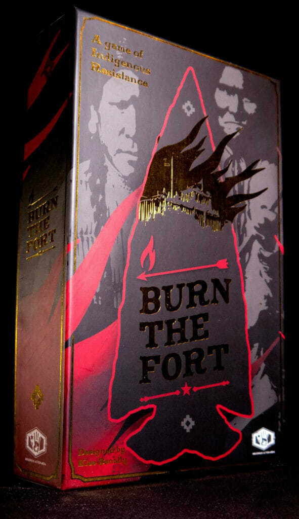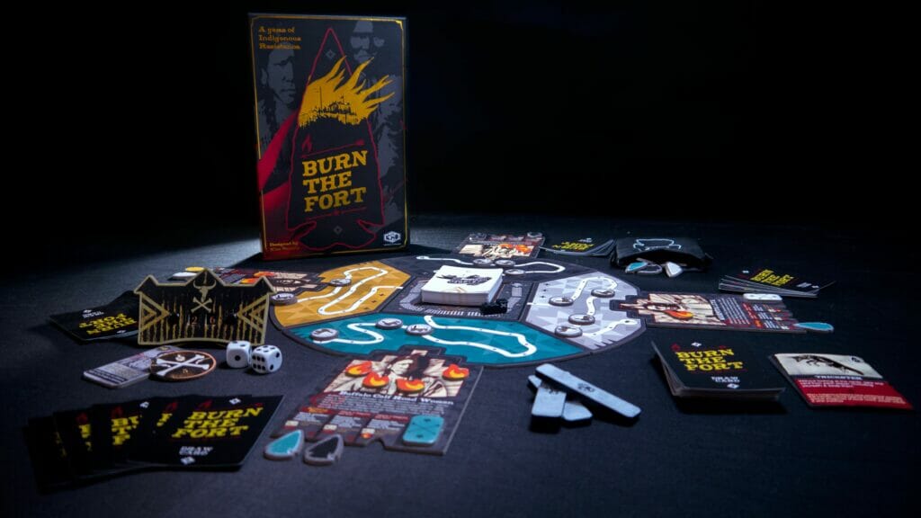 Dans Burn the Fort, chaque joueur joue le rôle d'un guerrier historique qui se bat pour stopper l'invasion coloniale de ses terres. À tour de rôle, les joueurs rassemblent et jouent des cartes, font des échanges, affrontent les chariots et rassemblent les jetons de feu et les jetons de flèche nécessaires pour brûler le fort.