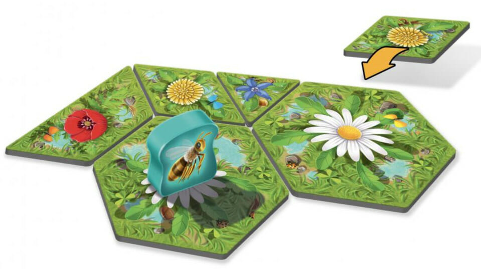Dans la prairie, de nombreuses fleurs s’épanouissent. Leur diversité permet de produire un miel délicieux. Pour cela, il faudra qu’une abeille butine des séquences de 3 fleurs indiquées sur des cartes Ruche (votre objectif). Vous la déplacerez de tuile en tuile pour qu’elle y parvienne. Dès que vous réaliserez une séquence, vous transformerez votre carte Ruche en carte Miel. Le joueur avec le plus de miel à la fin de la partie est déclaré vainqueur !