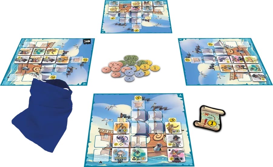 Captain Flip est un jeu d’une simplicité évidente expliqué en moins de temps qu’un coup de boulet de canon. À votre tour, piochez une tuile du sac. Vous l’aimez? Garde le! Vous n’aimez pas ça ? Retournez! Placez-le ensuite sur votre plateau pour former votre équipage.