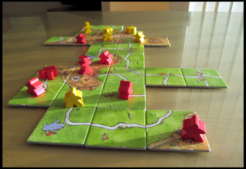 Oui, ce bon vieux Carcasonne est un jeu qui commence à accuser son âge : il n'est plus vraiment en phase avec les canons modernes au niveau de l'esthétisme et du thème. Pourtant, il a pour lui une simplicité qui le rend très accessible, et toujours agréable à jouer. J'ai toujours beaucoup de plaisir à le ressortir, et c'est probablement un des jeux que l'on joue le plus régulièrement avec ma femme. Le fait de construire son panorama reste pour moi un petit bonheur, malgré les illustrations qui ne me parlent pas. Il est juste assez subtil pour être intéressant sans être casse-tête.