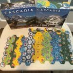 Cascadia est un jeu à base d’assemblage de tuiles et de draft de jetons mettant en scène les habitats et la vie sauvage du Nord Ouest du Pacifique. Au fur et à mesure des tours, les joueurs construisent leur propre zone de terrain et la peuplent avec la faune disponible.