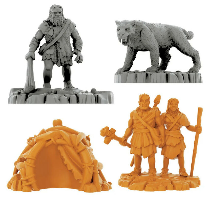 - 1 plateau de jeu 4 pistes Amélioration 13 jetons numérotés 8 fiches Référence 80 cartes Ressource 1 sabot à cartes 48 figures homo sapiens 1 figurine Néandertal 1 figurine Smilodon 18 marqueurs exploration 33 marqueurs Campement 14 marqueurs de points de victoire 2 dés 1 livret de règles.