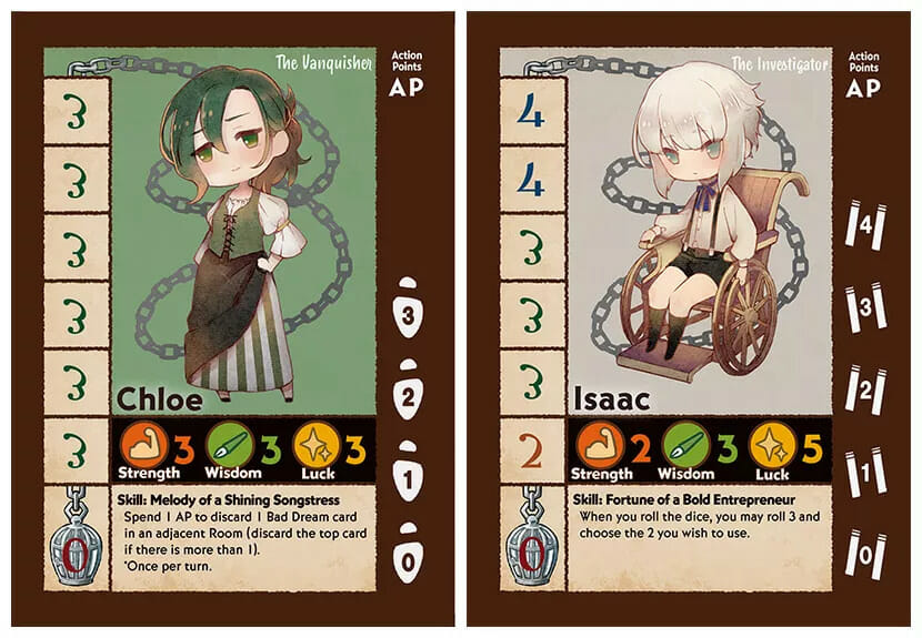 Lorsque des chaînes sont ajoutées ou retirées de votre carte de personnage, votre nombre de PA peut changer. Si les six cases de votre jauge de chaînes sont couvertes, vous êtes immobilisé et ne pouvez pas dépenser de PA pendant votre tour. Si un "mauvais rêve" est placé dans une pièce, aucun personnage ne peut entrer dans cette pièce, bien qu'il soit possible de le faire disparaître grâce à diverses compétences, objets ou événements ; si un "mauvais rêve" se retrouve dans votre chambre, vous êtes piégé dans ce rêve et ne pouvez plus bouger jusqu'à ce que vous ou quelqu'un d'autre puissiez dissoudre ce rêve.