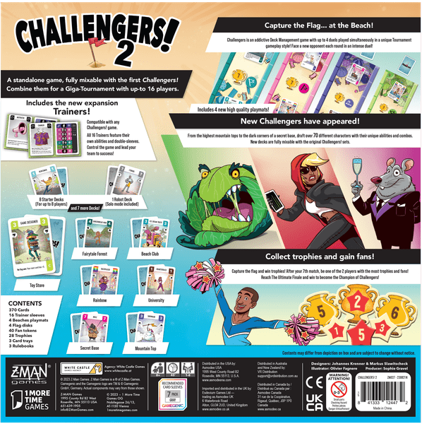 Challengers ! 2 est un jeu autonome qui peut également être mélangé avec Challengers ! pour créer de nouvelles combinaisons et de nouvelles expériences.