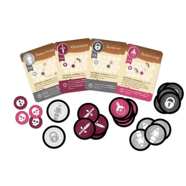 L’extension Felonie propose deux nouveaux éléments à Champ d’Honneur : les jetons Leurre et les marqueurs Poison.