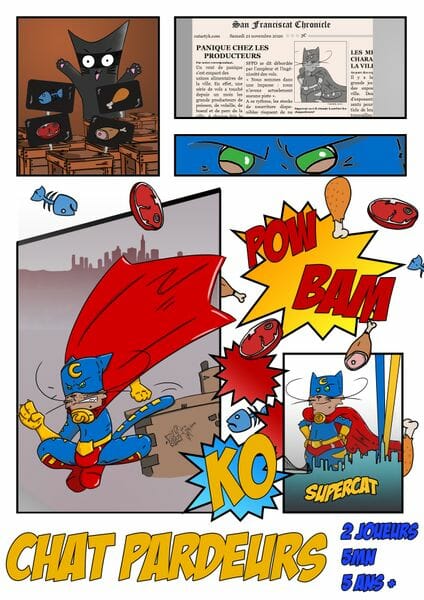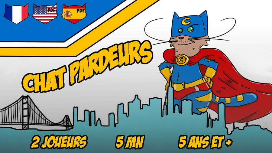 Chat pardeur est un petit jeu léger de hasard -mais pas que- pour deux, qui dure 5 mn et qui est jouable dès 5 ans.
